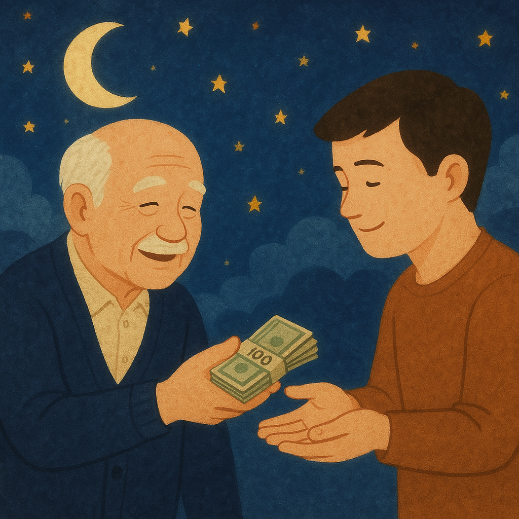 할아버지가 돈, 음식, 물건 등을 건네는 꿈은 대부분 길몽입니다. 재물운 상승, 기회 포착, 뜻밖의 귀인을 만날 가능성이 높습니다.
