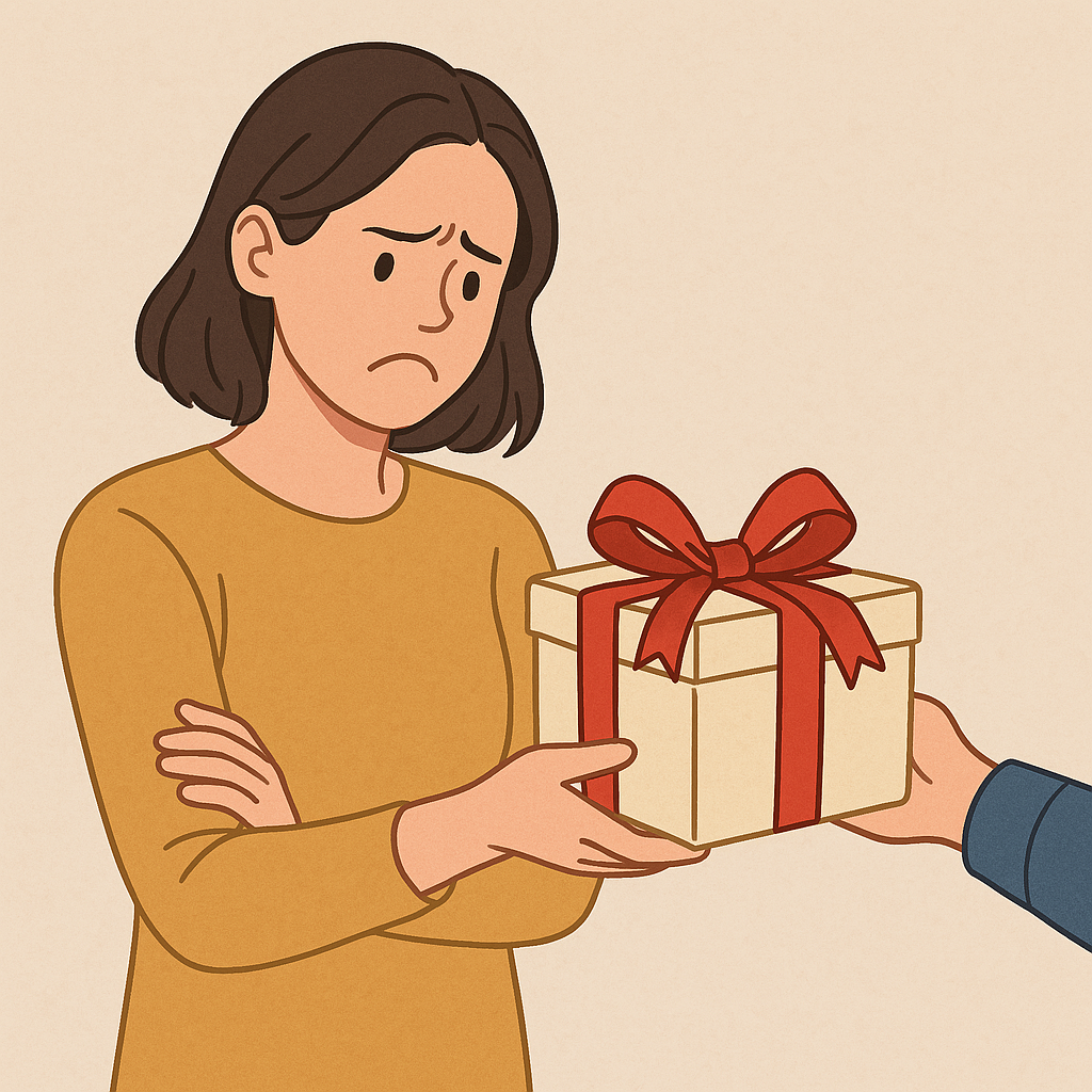 받기 싫은 선물을 억지로 받았다면, 현실에서도 원치 않는 상황에 놓여있을 수 있습니다.