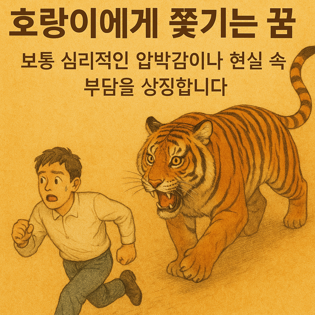 호랑이에게 쫓기는 꿈은 보통 심리적인 압박감이나 현실 속 부담을 상징합니다.