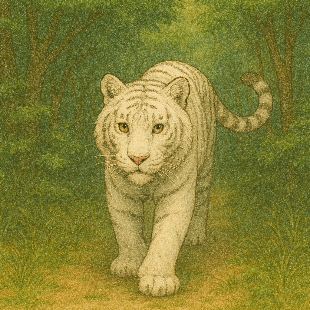하얀 호랑이는 신령한 존재로 여겨지기도 하며, 정해진 운명의 흐름이나 조상의 보호를 상징하기도 합니다.