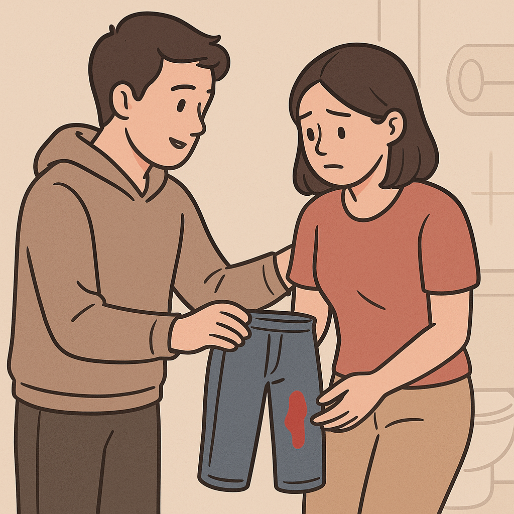 생리혈이 바지나 침대에 묻는 장면은, 감추고 있던 감정이나 민감한 이슈가 밖으로 드러나는 걸 의미할 수 있어요.
